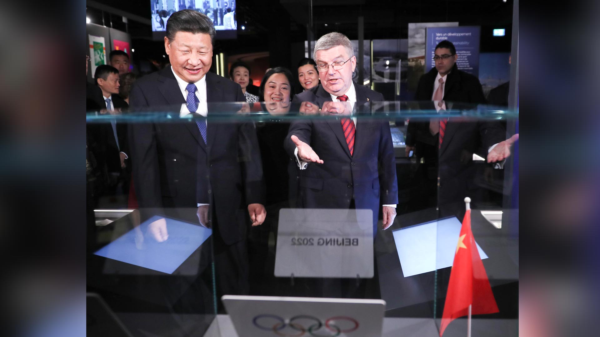 1月18日,國(guó)家主席習(xí)近平在瑞士洛桑國(guó)際奧林匹克博物館會(huì)見國(guó)際奧林匹克委員會(huì)主席巴赫。這是會(huì)見后,習(xí)近平在巴赫陪同下參觀國(guó)際奧林匹克博物館。新華社記者 姚大偉 攝2017-01-19