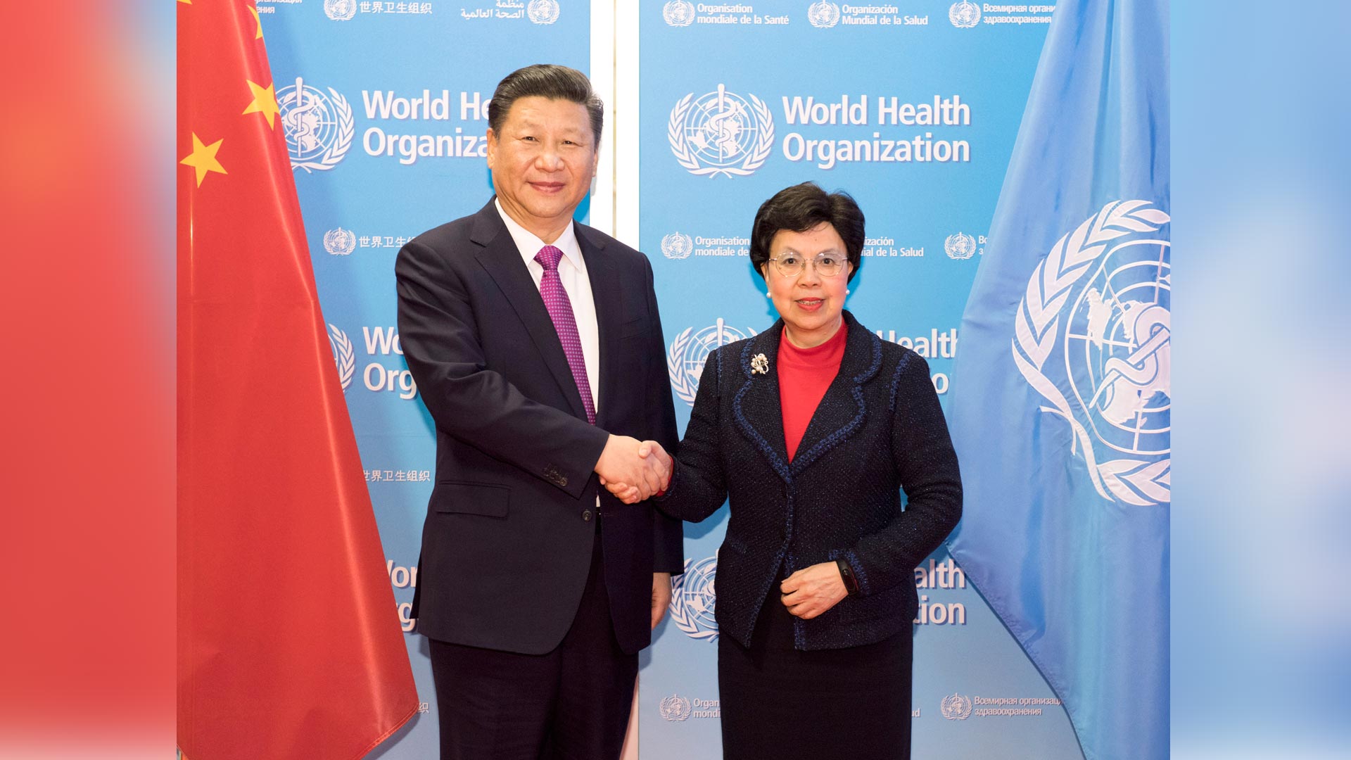 1月18日,國(guó)家主席習(xí)近平在瑞士日內(nèi)瓦訪問(wèn)世界衛(wèi)生組織并會(huì)見陳馮富珍總干事。 新華社記者 李學(xué)仁 攝2017-01-19