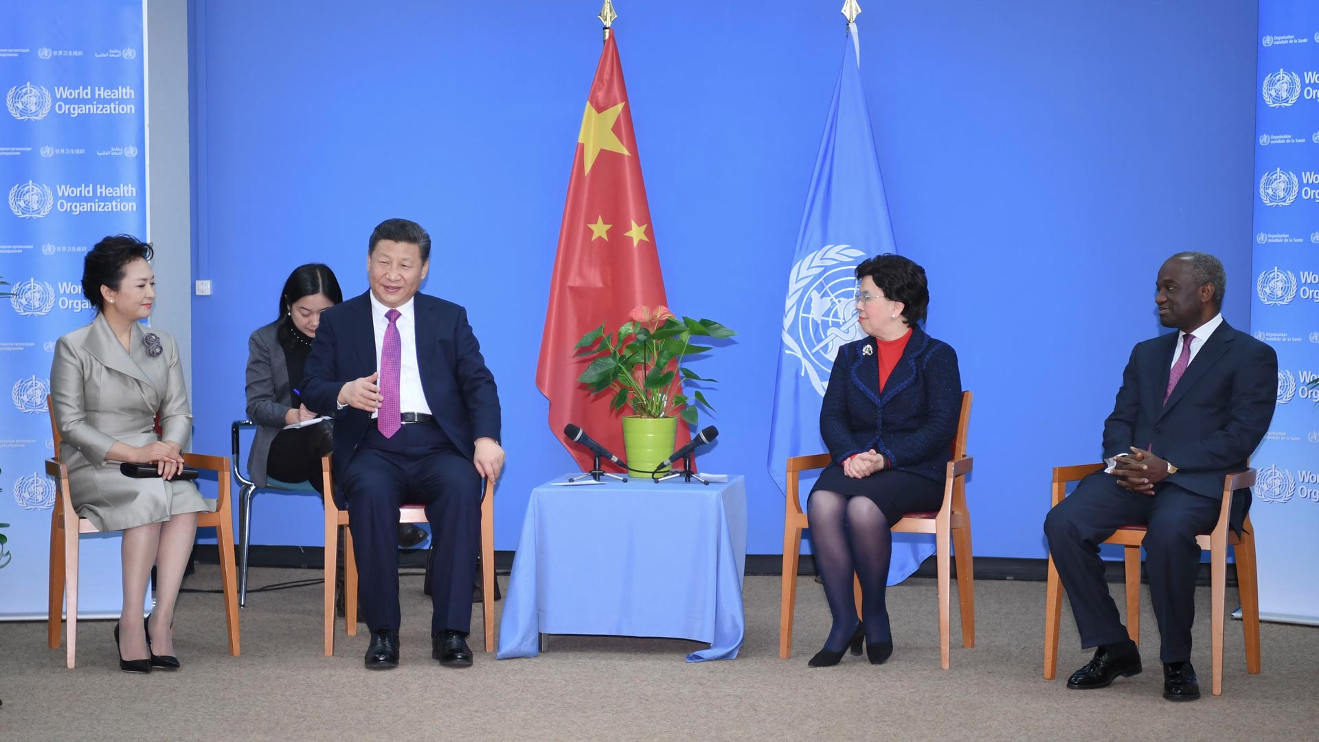 1月18日,國(guó)家主席習(xí)近平在瑞士日內(nèi)瓦訪問(wèn)世界衛(wèi)生組織并會(huì)見陳馮富珍總干事。 新華社記者 吳曉凌 攝2017-01-19