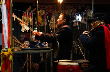 幕布轻挂,灯影流转,河湟皮影的独特唱腔在青海省西宁市城北区“冰雪烩”活动现场悠扬传开。俯身于幕布后翻飞皮影的,是河湟皮影戏国家级非物质文化遗产代表性传承人周邦辉。这已是他和皮影社今年在西宁“进城”演出的第5场。