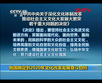 我國確定到2020年文化改革發(fā)展奮斗目標(biāo)