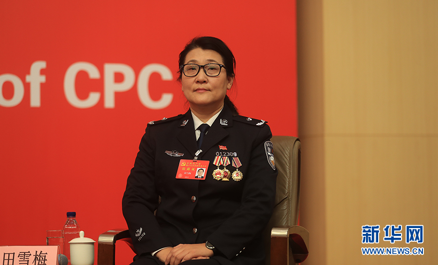 ??? 10月19日,十九大新聞中心舉辦集體采訪,邀請政法戰(zhàn)線代表談全面推進(jìn)依法治國。圖為公安部物證鑒定中心法醫(yī)病理損傷技術(shù)處副處長田雪梅。新華網(wǎng) 郝廣鵬攝