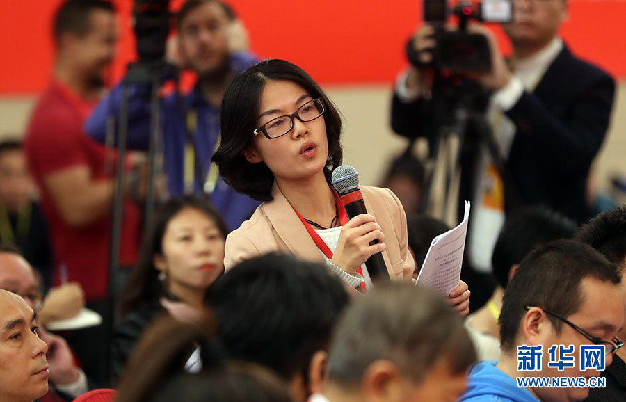 10月21日,十九大新聞中心舉辦記者招待會(huì),邀請(qǐng)國(guó)家發(fā)展改革委黨組書記、主任何立峰,副主任張勇,副主任寧吉喆介紹以新發(fā)展理念為引領(lǐng),推進(jìn)中國(guó)經(jīng)濟(jì)平穩(wěn)健康可持續(xù)發(fā)展有關(guān)情況,并回答記者提問(wèn)。圖為中國(guó)新聞社記者提問(wèn)。新華網(wǎng) 郝廣鵬攝