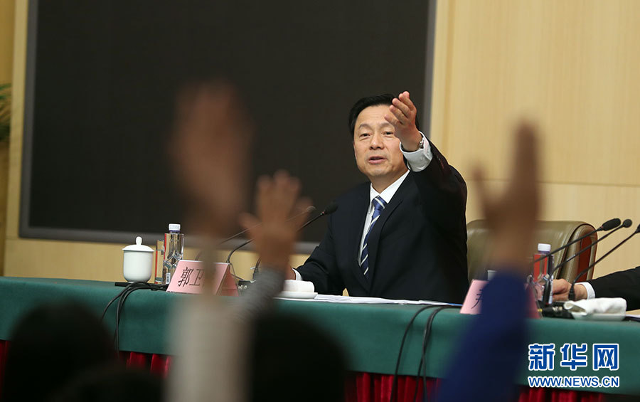 10月22日,十九大新聞中心舉辦記者招待會(huì),邀請(qǐng)教育部黨組書記、部長(zhǎng)陳寶生,民政部黨組書記、部長(zhǎng)黃樹賢,人力資源社會(huì)保障部黨組書記、部長(zhǎng)尹蔚民,住房城鄉(xiāng)建設(shè)部黨組書記、部長(zhǎng)王蒙徽,國(guó)家衛(wèi)生計(jì)生委黨組書記、主任李斌介紹滿足人民新期待,保障改善民生有關(guān)情況,并回答記者提問。圖為主持人郭衛(wèi)民。新華網(wǎng) 郝廣鵬攝