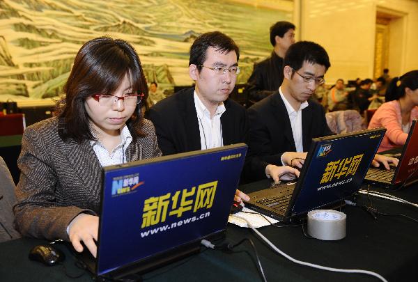 (兩會(huì)·人大開(kāi)幕)記者搶時(shí)效