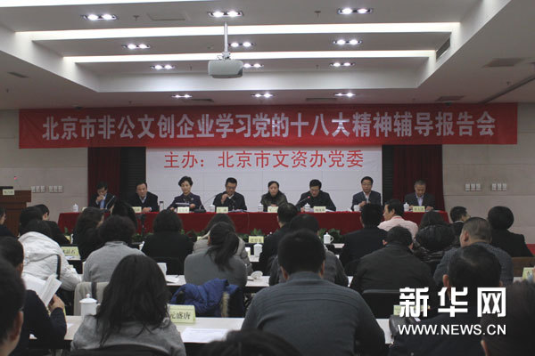 ??? 新華網(wǎng)北京11月28日電 (記者 陳元)27日,北京市國有文化資產(chǎn)監(jiān)督管理辦公室(簡稱文資辦)召開非公有制文化創(chuàng)意企業(yè)學(xué)習(xí)宣傳黨的十八大精神輔導(dǎo)報(bào)告會(huì)。來自北京市的百余家非公文創(chuàng)企業(yè)代表參加了報(bào)告會(huì)。