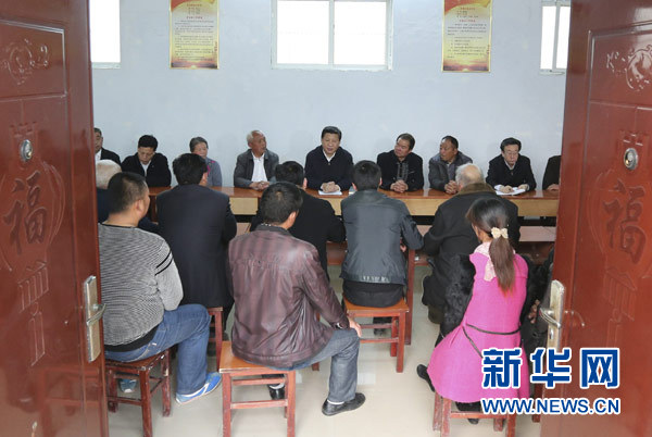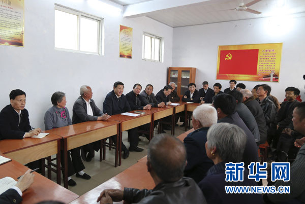 ??? 3月17日,習(xí)近平在東壩頭鄉(xiāng)張莊村村委會(huì)與干部群眾座談,聽取意見和建議。 新華社記者李學(xué)仁攝