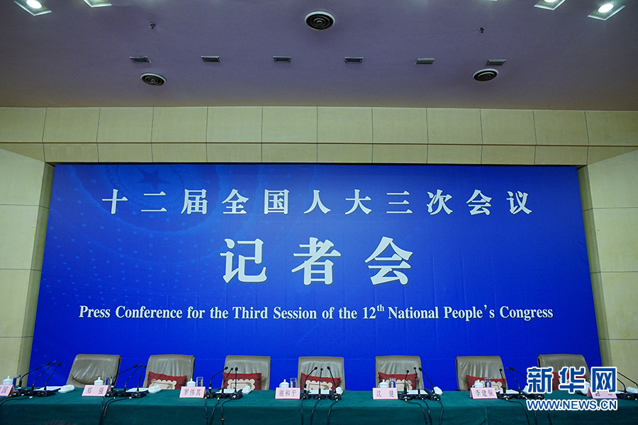 ????3月13日上午10時(shí),十二屆全國人大三次會議新聞中心邀請四川大學(xué)校長謝和平、江蘇省教育廳廳長沈健、廣東省教育廳廳長羅偉其、海南大學(xué)校長李建保、貴州大學(xué)校長鄭強(qiáng)就完善高等教育治理結(jié)構(gòu)的相關(guān)問題回答中外記者提問。圖為記者會現(xiàn)場。新華網(wǎng)/中國政府網(wǎng) 郭小天 攝