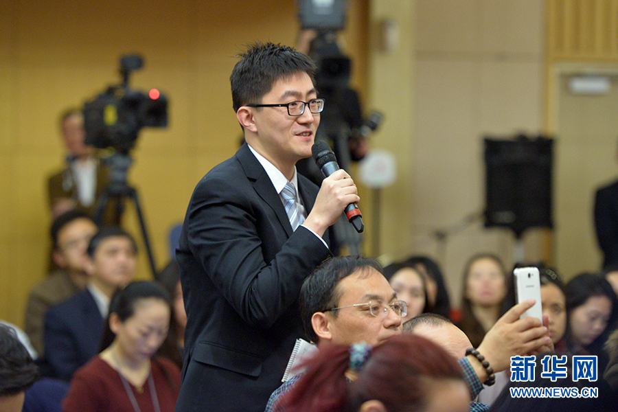 ????3月13日上午10時,十二屆全國人大三次會議新聞中心邀請四川大學(xué)校長謝和平、江蘇省教育廳廳長沈健、廣東省教育廳廳長羅偉其、海南大學(xué)校長李建保、貴州大學(xué)校長鄭強就完善高等教育治理結(jié)構(gòu)的相關(guān)問題回答中外記者提問。圖為中央人民廣播電臺、央廣網(wǎng)記者提問。新華網(wǎng)/中國政府網(wǎng) 郭小天 攝