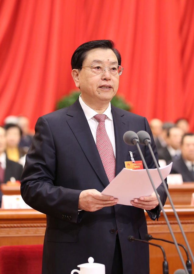 3月15日,第十二屆全國人民代表大會第三次會議在北京人民大會堂舉行閉幕會。張德江主持閉幕會并講話。 新華社記者 蘭紅光 攝