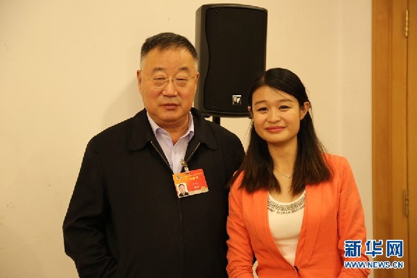 ????2015年3月15日,全國(guó)政協(xié)委員、中科院院士、氣象學(xué)會(huì)理事長(zhǎng)秦大河做客新華網(wǎng)2015全國(guó)兩會(huì)特別訪談。圖為主持人與秦大河合影。