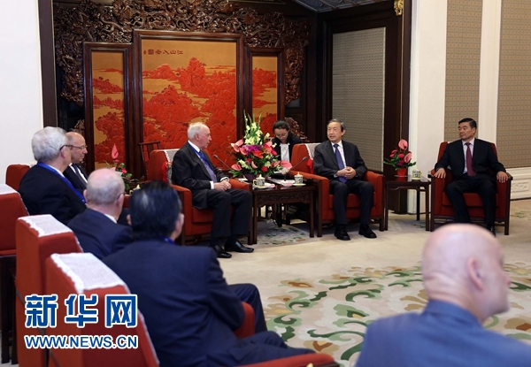 7月15日,國務(wù)院副總理馬凱在北京中南海紫光閣會見以澳大利亞前總理基廷為主席的國家開發(fā)銀行國際顧問委員會成員。 新華社記者劉衛(wèi)兵攝