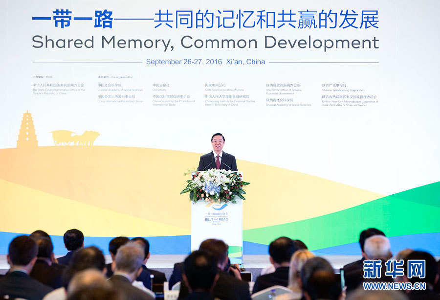 ??? 9月26日,2016“一帶一路”國際研討會在西安召開,中共中央政治局委員、中央書記處書記、中宣部部長劉奇葆出席研討會,發(fā)表題為《促進民心相通 實現(xiàn)合作共贏》的主旨演講。新華社記者 丁林 攝