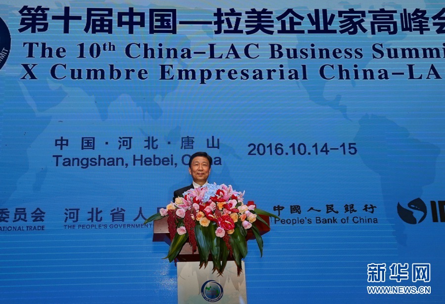 10月14日,第十屆中國(guó)-拉美企業(yè)家高峰會(huì)在河北唐山舉行,中國(guó)國(guó)家副主席李源潮出席開(kāi)幕式并致辭。 新華社記者楊世堯攝