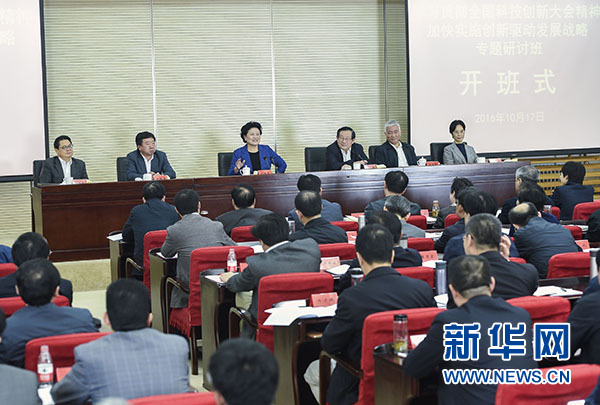 10月17日,中央組織部、中央黨校、科技部聯(lián)合舉辦的省部級(jí)干部“學(xué)習(xí)貫徹全國(guó)科技創(chuàng)新大會(huì)精神加快實(shí)施創(chuàng)新驅(qū)動(dòng)發(fā)展戰(zhàn)略”專題研討班在北京開班。中共中央政治局委員、國(guó)務(wù)院副總理劉延?xùn)|出席開班式并講話。新華社記者 張領(lǐng) 攝