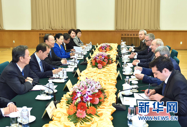 新華社北京11月3日電(記者王慧慧)中共中央書記處書記、全國政協(xié)副主席、中國經濟社會理事會主席杜青林3日在北京與亞美尼亞公眾院主席馬努基揚會談。