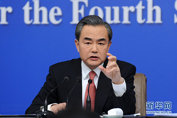 ????十二屆全國人大四次會(huì)議新聞中心于3月8日(星期二)10時(shí)在梅地亞中心多功能廳舉行記者會(huì),邀請外交部部長王毅就“中國的外交政策和對外關(guān)系”的相關(guān)問題回答中外記者的提問。圖為外交部部長王毅回答記者提問。新華網(wǎng)/中國政府網(wǎng)記者 陳競超攝