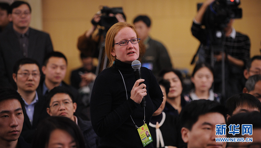 ?????十二屆全國(guó)人大四次會(huì)議新聞中心于3月12日(星期六)14時(shí)30分在梅地亞中心多功能廳舉行記者會(huì),邀請(qǐng)國(guó)務(wù)院國(guó)有資產(chǎn)監(jiān)督管理委員會(huì)主任肖亞慶、副主任張喜武、副主任黃丹華和副秘書長(zhǎng)、新聞發(fā)言人彭華崗就“國(guó)企改革”的相關(guān)問題回答中外記者的提問。圖為金融時(shí)報(bào)記者提問。新華網(wǎng)/中國(guó)政府網(wǎng) 陳杰 攝
