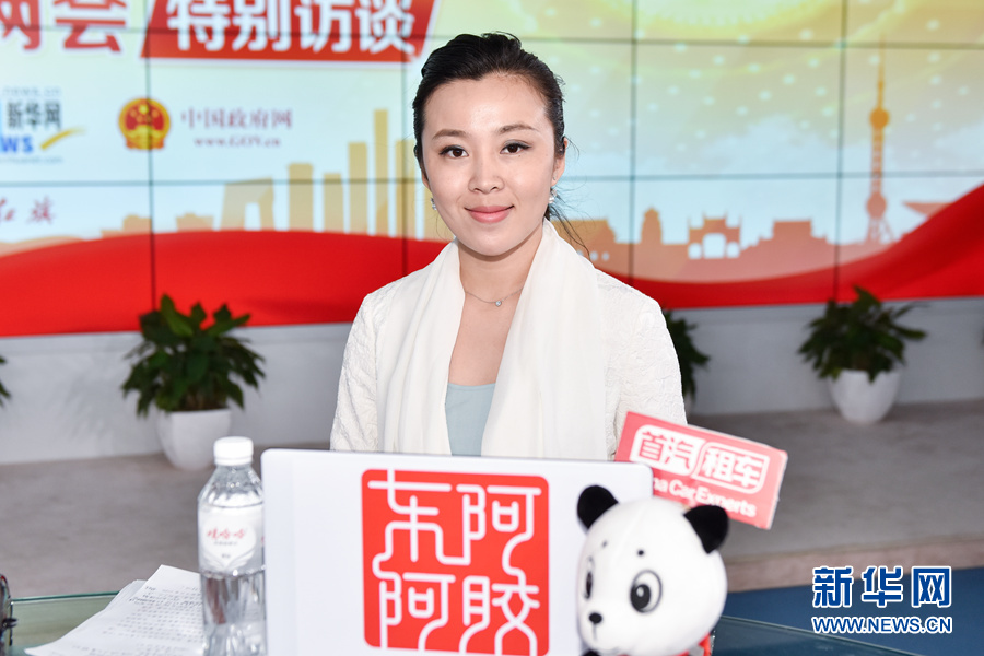 3月12日,全國(guó)人大代表,運(yùn)城市市長(zhǎng)王清憲做客新華網(wǎng)2016全國(guó)兩會(huì)特別訪(fǎng)談,與新華網(wǎng)網(wǎng)友在線(xiàn)交流。圖為新華網(wǎng)主持人張姣。新華網(wǎng) 付宇鵬 攝