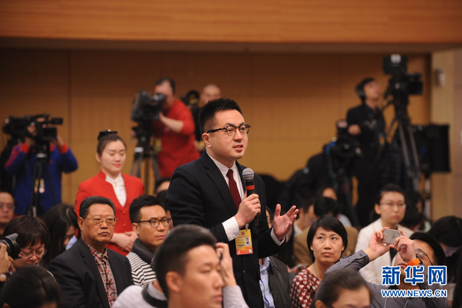 十二屆全國人大四次會議新聞中心于3月14日(星期一)10時在梅地亞中心多功能廳舉行記者會,邀請交通運輸部部長楊傳堂、交通運輸部運輸服務司司長劉小明、北京交通發(fā)展研究中心主任郭繼孚就“深化出租汽車改革與發(fā)展”的相關問題回答中外記者的提問。圖為中國網記者提問。新華網/中國政府網 陳杰 攝