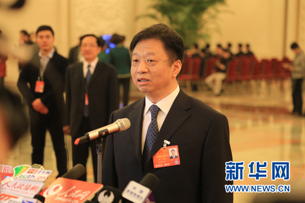 3月16日上午,第十二屆全國人民代表大會第四次會議在人民大會堂舉行閉幕會,表決關(guān)于政府工作報(bào)告、關(guān)于國民經(jīng)濟(jì)和社會發(fā)展第十三個(gè)五年規(guī)劃綱要、關(guān)于2015年國民經(jīng)濟(jì)和社會發(fā)展計(jì)劃執(zhí)行情況與2016年國民經(jīng)濟(jì)和社會發(fā)展計(jì)劃等7個(gè)決議草案。圖為國家海洋局局長王宏在“部長通道”接受采訪。新華網(wǎng)/中國政府網(wǎng) 李何銘 攝
