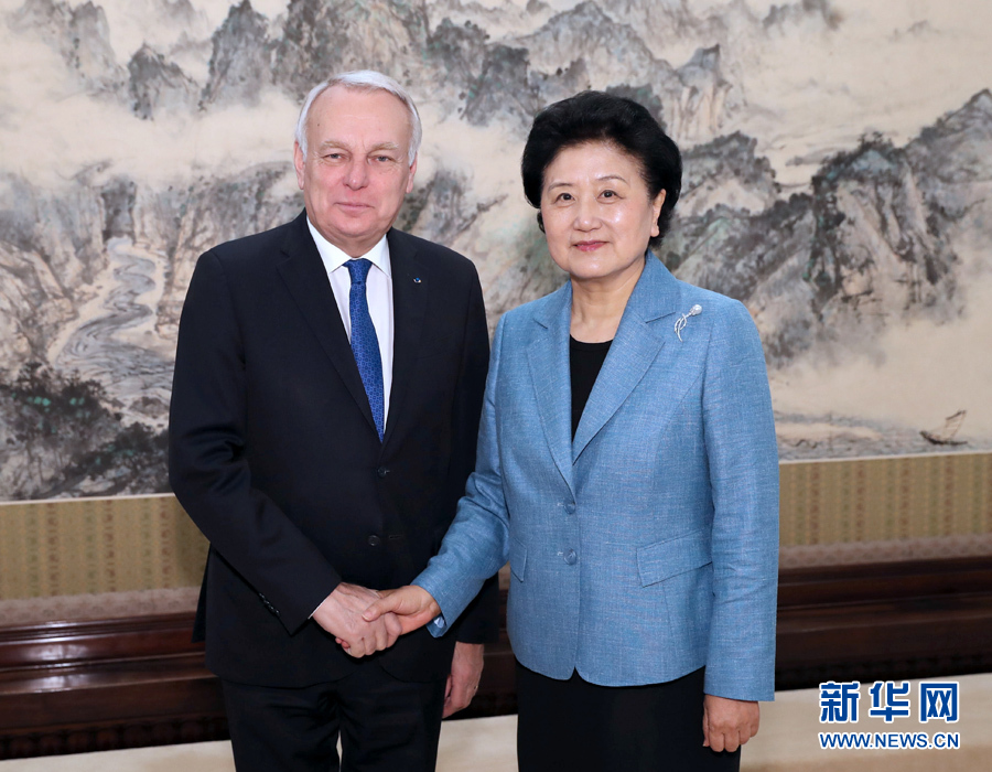 ??? 4月14日,國務(wù)院副總理劉延?xùn)|在北京中南海紫光閣會見中法高級別人文交流機制法方主席、法國外交和國際發(fā)展部部長讓-馬克·艾羅。新華社記者 馬占成 攝