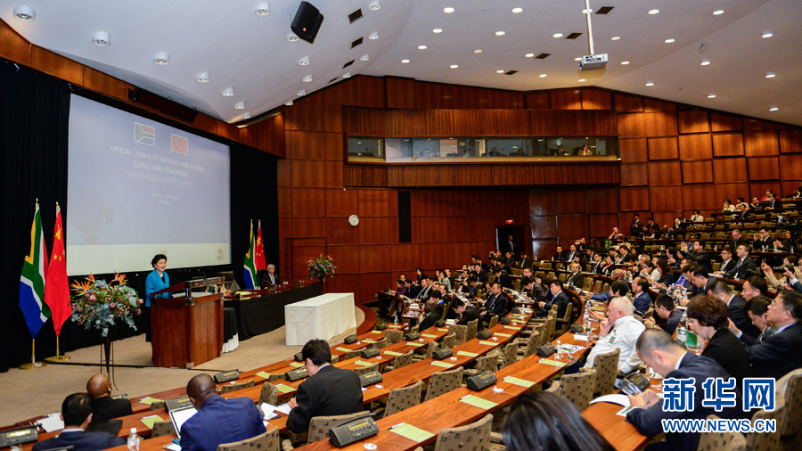 4月24日,在南非比勒陀利亞,中國國務院副總理劉延東出席中國南非科技園合作項目啟動儀式。 新華社記者翟健嵐攝