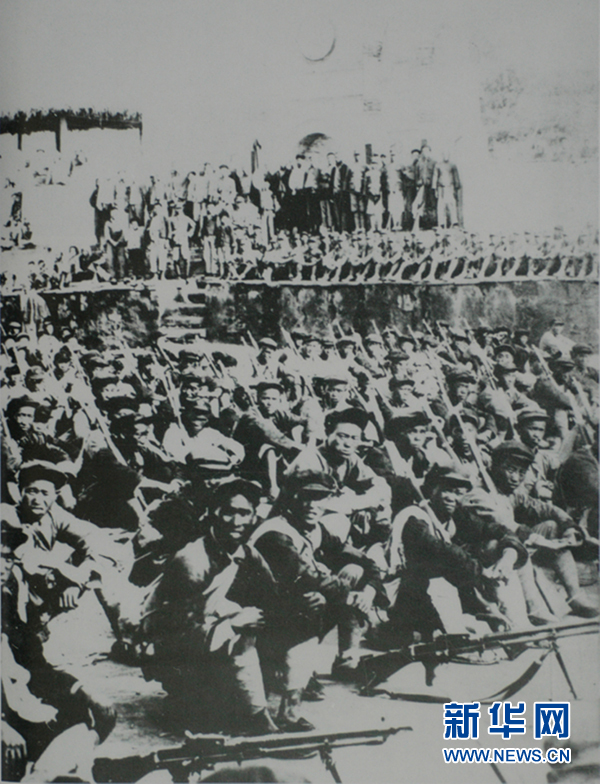 1935年9月16日,紅25軍在陜西省延川縣永平鎮(zhèn)(今永坪)同陜甘紅軍會師。圖為會師時的情景(資料照片)。 新華社發(fā)