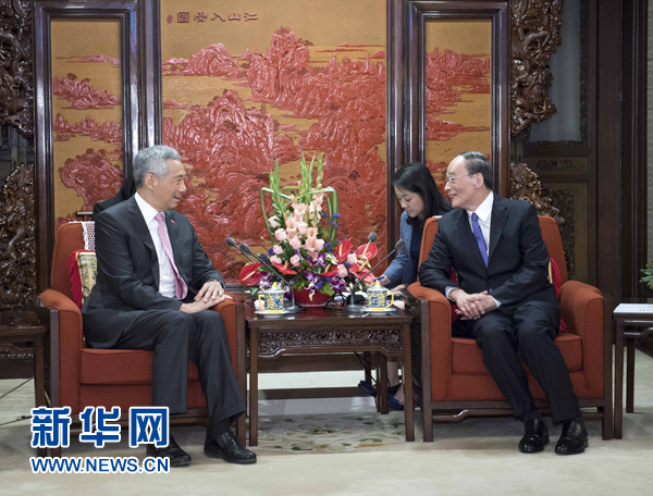 9月20日,中共中央政治局常委、中央紀(jì)委書記王岐山在北京會見新加坡總理李顯龍。 新華社記者 李濤 攝