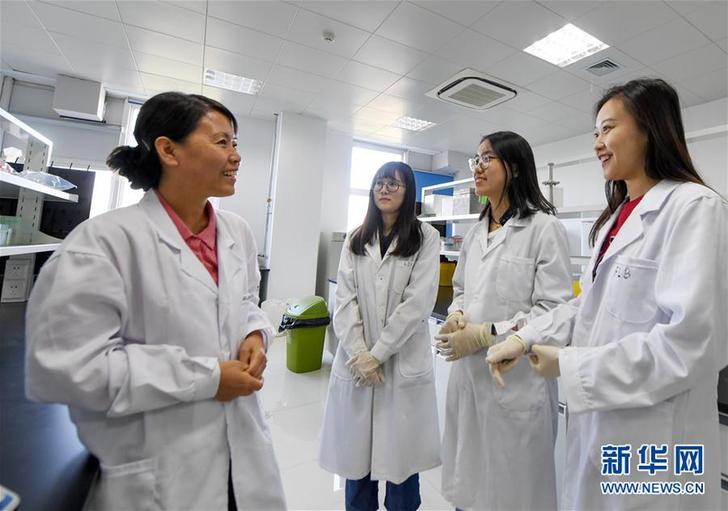 9月28日,在天津大學(xué)藥學(xué)院,馮翠玲(左一)和學(xué)生在實驗室里交流。新華社記者白禹攝