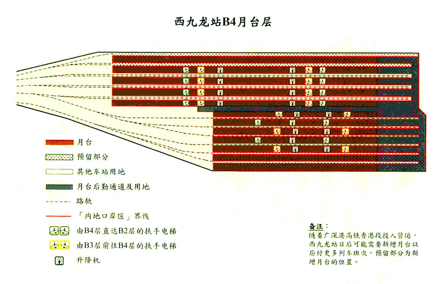 西九龍站口岸分為香港口岸區(qū)和內(nèi)地口岸區(qū)。香港口岸區(qū)由香港特區(qū)依據(jù)特區(qū)法律設(shè)立和管轄,實(shí)行過境限制區(qū)管理。內(nèi)地口岸區(qū)由內(nèi)地根據(jù)本合作安排和內(nèi)地法律設(shè)立和管轄,實(shí)行口岸管理制度。