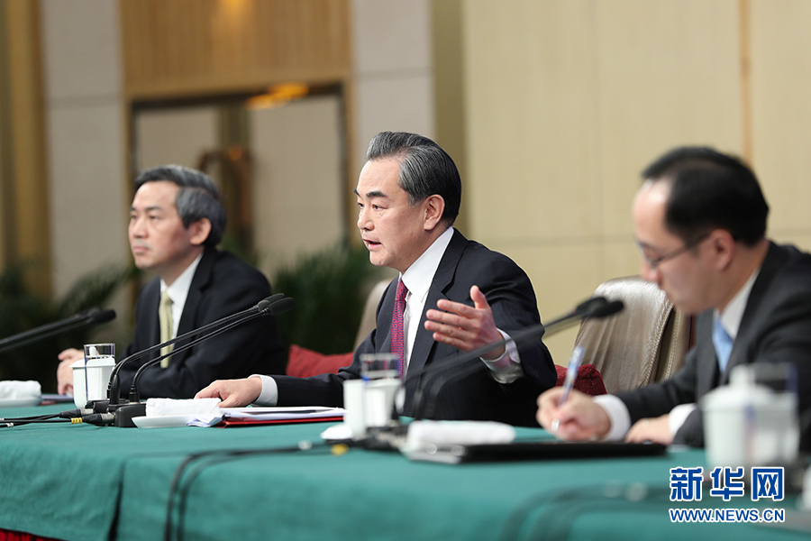 十二屆全國人大五次會(huì)議新聞中心于3月8日(星期三)10時(shí)在梅地亞中心多功能廳舉行記者會(huì),邀請(qǐng)外交部部長王毅就“中國的外交政策和對(duì)外關(guān)系”的相關(guān)問題回答中外記者的提問。圖為外交部部長王毅回答現(xiàn)場記者提問。新華網(wǎng)/中國政府網(wǎng) 孫韜 攝