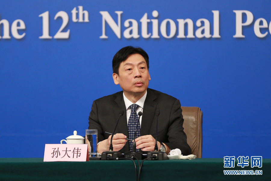 3月14日,十二屆全國(guó)人大五次會(huì)議新聞中心舉行記者會(huì),邀請(qǐng)國(guó)家質(zhì)檢總局局長(zhǎng)支樹(shù)平、副局長(zhǎng)兼國(guó)家認(rèn)證認(rèn)可監(jiān)督管理委員會(huì)主任孫大偉、國(guó)家標(biāo)準(zhǔn)化管理委員會(huì)主任田世宏就“質(zhì)量提升”的相關(guān)問(wèn)題回答中外記者的提問(wèn)。圖為國(guó)家質(zhì)檢總局副局長(zhǎng)兼國(guó)家認(rèn)證認(rèn)可監(jiān)督管理委員會(huì)主任孫大偉。新華網(wǎng)/中國(guó)政府網(wǎng) 傅義洲 攝