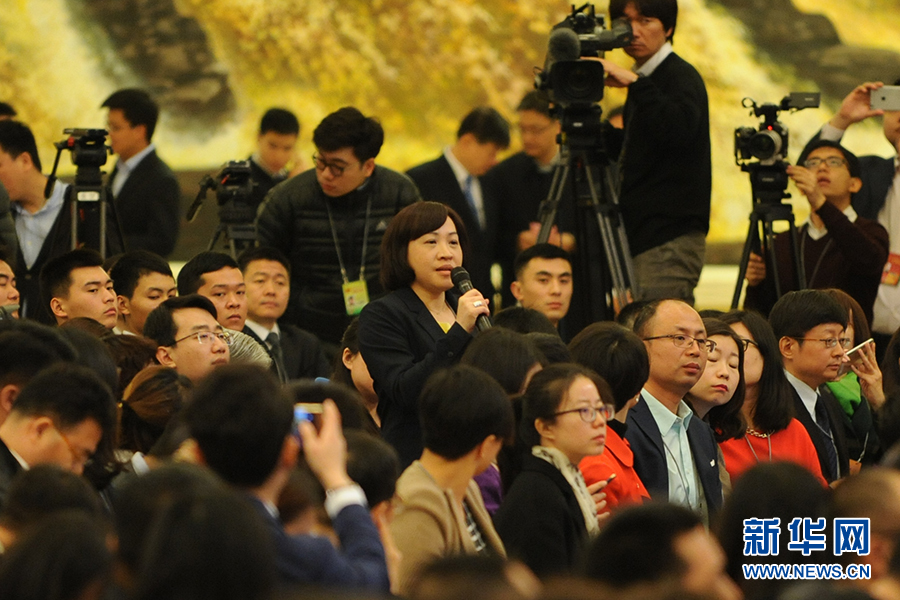 3月15日上午,國(guó)務(wù)院總理李克強(qiáng)在人民大會(huì)堂三樓金色大廳會(huì)見采訪十二屆全國(guó)人大五次會(huì)議的中外記者并回答記者提出的問題。圖為臺(tái)灣聯(lián)合報(bào)記者提問。新華網(wǎng)/中國(guó)政府網(wǎng)?孫韜 攝?
