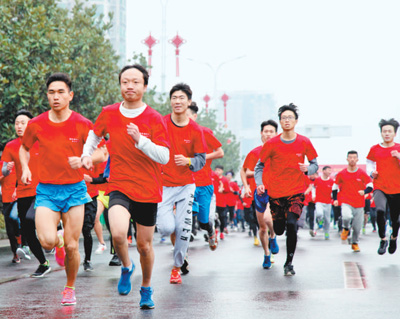 湖南衡陽市民參加元旦環(huán)城賽跑。劉愛成攝(新華社發(fā))