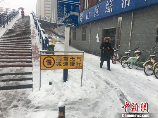 合肥路邊豎起標(biāo)識(shí)牌,提醒過(guò)往行人?!≮w強(qiáng) 攝
