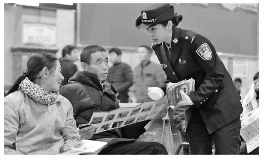 圖為警方在火車站向旅客宣講春運(yùn)安全注意事項(xiàng)。本報(bào)通訊員 張?chǎng)?方亮攝