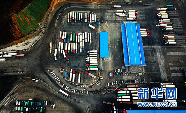 1月16日,來(lái)自東盟國(guó)家的貨車(chē)在憑祥市邊境貿(mào)易監(jiān)管中心等候裝運(yùn)貨物。新華社記者 張愛(ài)林 攝