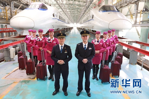 1月16日,擔(dān)任首發(fā)列車值乘工作的貴陽客運(yùn)段司機(jī)和乘務(wù)員在貴陽亮相。新華社記者劉續(xù)攝