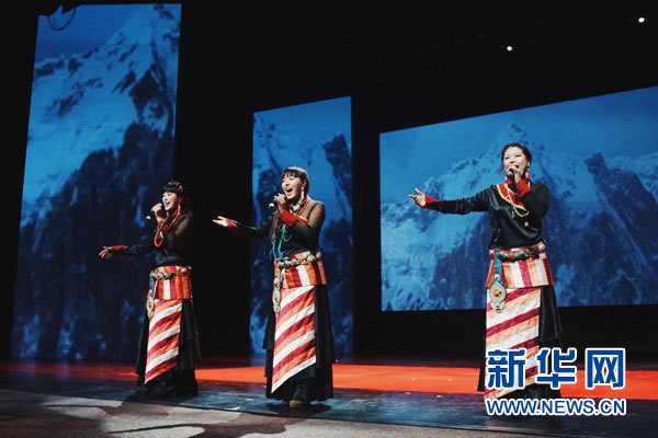藝術(shù)團演員為現(xiàn)場貴賓敬獻哈達。