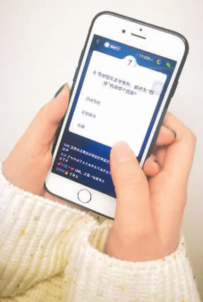 “人民日報海外版?zhèn)b客島的作者一般自稱為島叔和什么?”“當(dāng)然是島妹?。 卑殡S著手機屏幕上緊張的10秒倒計時,武漢的蔡家欣迅速地點擊了正確答案。她的微信群里,一起答題的小伙伴們都在一邊緊張地答題,一邊熱烈地討論著。