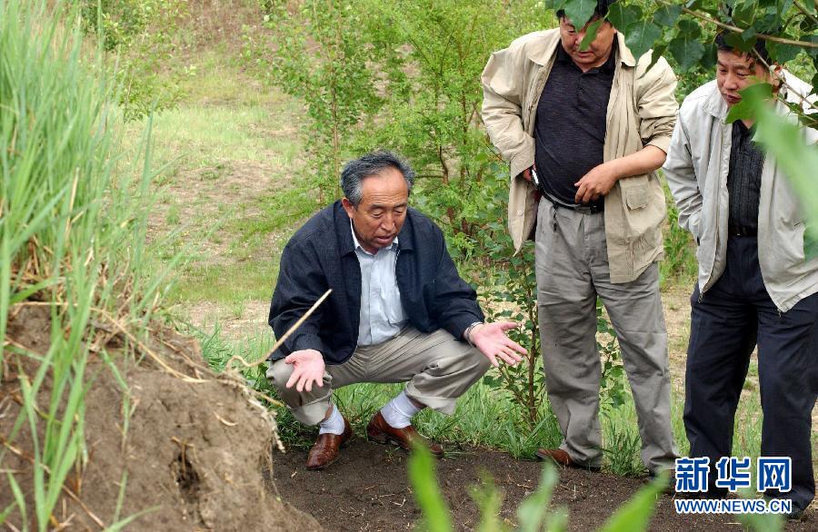 2002年5月30日,在黑龍江省齊齊哈爾市拜泉縣,王樹清(左一)在檢查植樹造林情況。新華社發(fā)