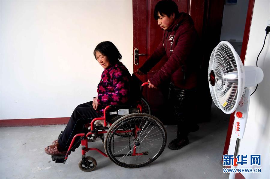 盧氏縣官道口村貧困戶(hù)劉俊榮和兒子在遷居的新家里(2月1日攝)。新華社記者朱祥 攝