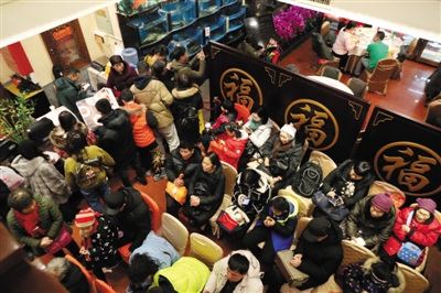除夕當(dāng)天,在一家餐廳等號(hào)吃年夜飯的食客。記者 侯少卿 攝