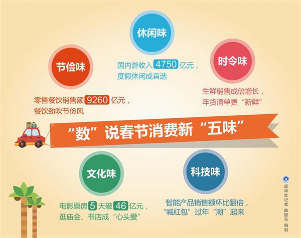 圖表:“數”說春節(jié)消費新“五味” 新華社記者 曲振東 編制