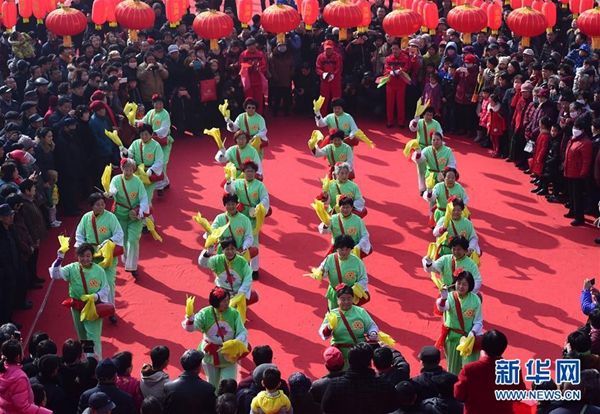 2月22日,在河北省滄州市新華區(qū)舉行的“民俗展演鬧新春”活動上,腰鼓愛好者在表演腰鼓。當日是正月初七,各地舉行豐富多彩的民俗文化展演活動,熱熱鬧鬧歡慶新春。 新華社發(fā)(傅新春 攝)