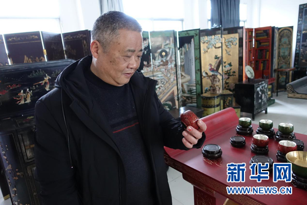 新華網(wǎng)黃山2月23日電(卓越)漆器,即用漆涂在各種器物的表面上所制成的日常器具及工藝品、美術(shù)品,是中國(guó)古代在化學(xué)工藝及工藝美術(shù)方面的重要發(fā)明。福州脫胎漆器,廈門(mén)髹金漆絲漆器,廣東暈金漆器,揚(yáng)州螺鈿漆器,北京剔紅漆器......在眾多地域制漆技藝中,徽漆作品更以其復(fù)雜的工藝、豐富變幻的肌理受到世人的關(guān)注,并被收入國(guó)家非物質(zhì)文化遺產(chǎn)名錄。春節(jié)期間,跟隨“非遺”傳承人、黃山市徽漆工藝有限公司總經(jīng)理奚建輝一起,記者近距離感受了徽漆工藝那古老而神奇的魅力。