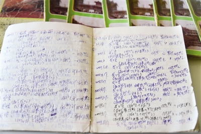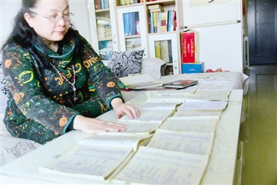 曹瑛在翻看媽媽留下的15本生活賬本。鄭報融媒記者 謝源茹 圖