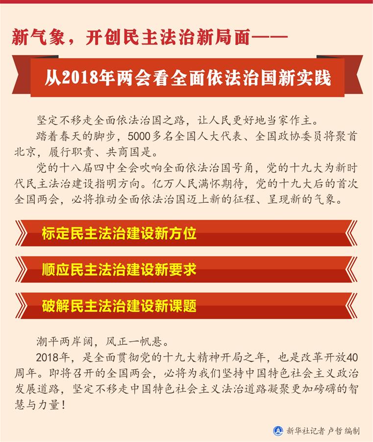 新華社北京2月28日電 題:新氣象,開創(chuàng)民主法治新局面——從2018年兩會看全面依法治國新實踐