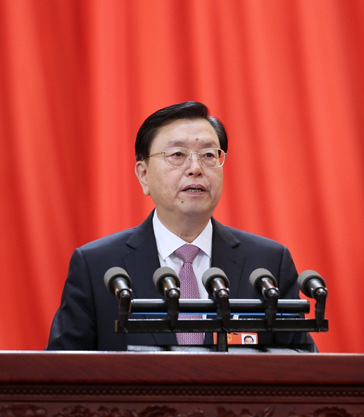 3月11日,十二屆全國人大常委會(huì)委員長張德江向十三屆全國人大一次會(huì)議作《全國人民代表大會(huì)常務(wù)委員會(huì)工作報(bào)告》。 新華社記者 姚大偉 攝